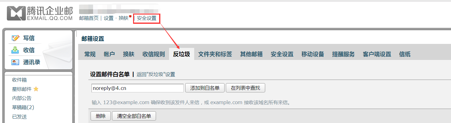 如果您是qq郵件,或qq的企業(yè)郵件,請先添加noreply@4.cn到白名單中,再點擊“收信”操作。